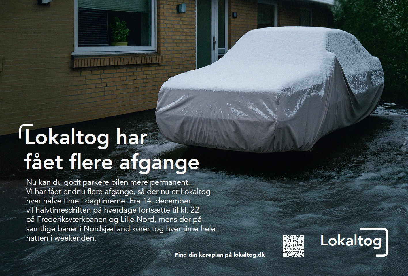 Med de mange nye afgange bliver toget et reelt alternativ til bilen - også når det bliver sent. Derfor lancerer Lokaltog en kampagne, der tydeligt viser netop dette.