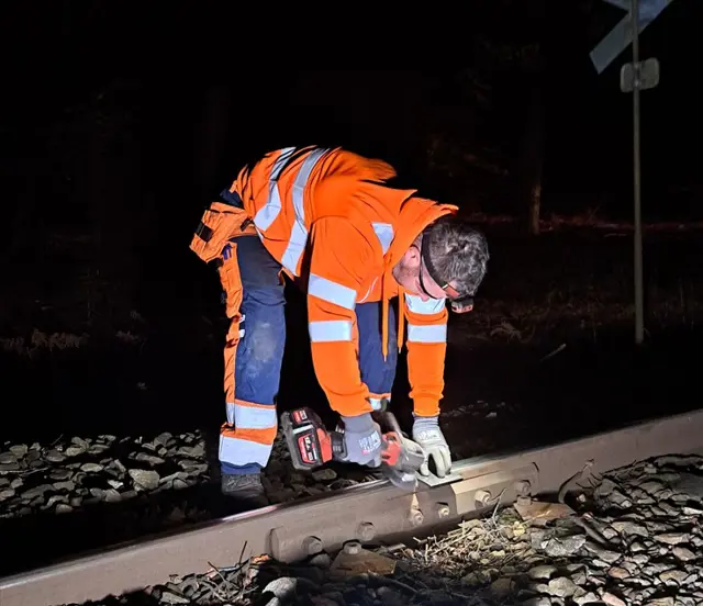 Bevæbnet med en vinkelsliber med stålbørster påsat kører Morten gennem Gribskov for at slibe skinnerne seks kritiske steder, inden første morgentog begiver sig ud på skinnerne. Morten Larsen er en del af en taskforce, der yder en særlig indsats for at sikre vores rettighed.