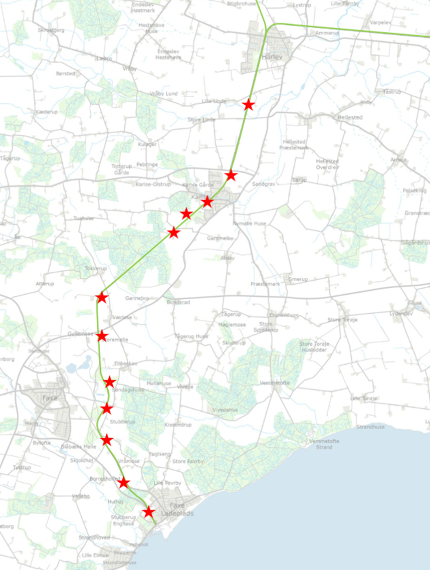 Byggepladser mellem Hårlev og Faxe Ladeplads.